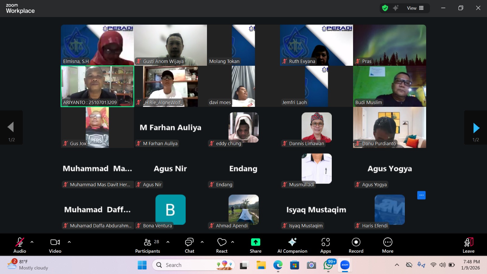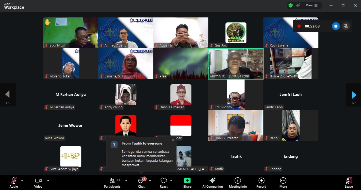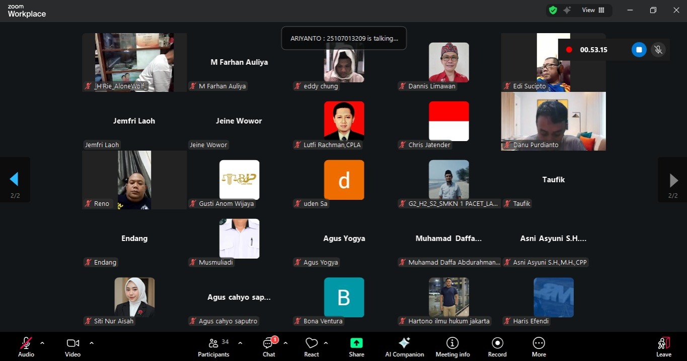 ZOOM METTING kordinasi pendirian ASOSIASI PARALEGAL INDONESIA